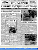 Il secondo ricordo è diretto, tutto mio: Atalanta-Palermo, magari proprio quello cui si riferisce la pagina qui accanto del 1962. Ricordo quel rosa nero azzurro a contrasto con il campo, una magia cromatica che solo chi va allo stadio può comprendere. Ricordo che le regole le ignoravo proprio, quindi la mia età doveva essere minima. Ricordo la domanda che posi all’amico di famiglia che mi aveva accompagnato: “L’8 di una squadra può andare contro l’8 dell’altra?” Non ricordo la sua risposta, ma la faccia sorpresa quella sì.
