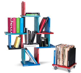 “Bookspile” del designer lituano Andrius Pocius è un sistema di scaffali modulari che di profilo sembrano libri: morale, tra scaffali e libri veri e propri non appare distinzione. Una splendida confusione di ruoli.