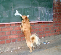 Qualche giorno fa Cristina mi ha mandato un elenco di titoli che sembrano tirati giù con lo stampino, a riprova di come il mercato editoriale si stia specializzando in titoli in-credibili, e di come i lettori corrano in cerca dell’osso (dipinto) proprio come il cagnolino qui a fianco. Ora Cristina mi manda altri due titoli di questo tipo: “La casa degli amanti indecisi” di Chris Killen, Einaudi, e “La scuola degli ingredienti segreti” di Erica Bauermeister, Garzanti. Secondo me, se provate a scorrere i vostri scaffali ne trovate alcuni pure voi. Si accettano suggerimenti, magari poi eleggiamo il “migliore”.