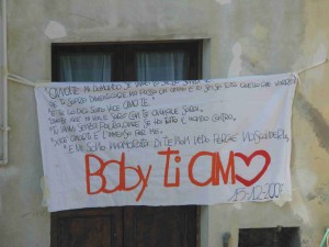 Non è ancora una moda ma certamente è una tendenza, perlomeno dalle mie parti. Mi riferisco alla pratica dei giovani adolescenti, perlopiù maschi, di esporre nottetempo di fronte alla casa delle ragazze concupite uno striscione dove i ragazzi dichiarano il loro interesse e amore. Ora, io ero rimasto al farsi la corte e piantarsi via sms, o twitter che dir si voglia. Questa variante XXL mi spiazza e mi interroga nello stesso tempo: che bisogno c’è di un lenzuolo per dire mi piaci? Forse che l’esagerazione e l’avventura insite nel gesto sono un vantaggio agli occhi dell’amata? Forse che il rendere pubblico il sentimento fa sì che la pulzella non possa sottrarsi al confronto e alla risposta certamente positiva? Mah, io in questi teloni (mi dicono 9 € solo per la tela, ndr) ci vedo un po’ di cultura televisiva reality e qualche difficoltà nella gestione del rapporto ravvicinato, quello condito di frasi con soggetto verbo e complemento per capirci. Quelle parole occhi negli occhi, semplici, sussurrate, calde magari. Anche se, devo dire, ai miei tempi la dichiarazione canonica già non esisteva già più, o forse stava per estinguersi: era un punto d’onore capire se lei ci stava o no. E avendolo capito, si evitava il rischio di un rifiuto, ovvero si aveva l’immenso piacere di trovare conferma a quei segni che ci pareva d’aver colto in copia. Insomma, ora che ci penso non servivano tante parole, semmai tanta attenzione, e un bacio al momento giusto. Sono graditi ricordi e pareri.